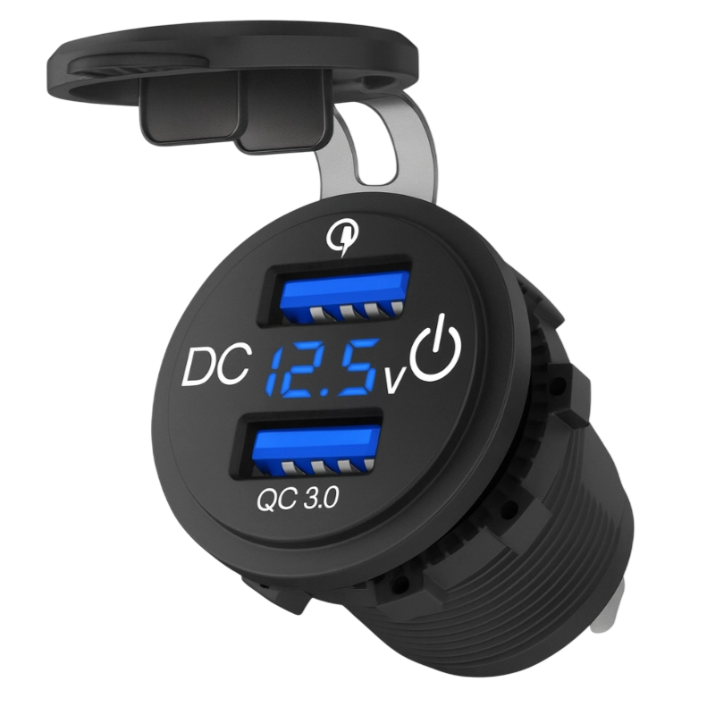 Ładowarka USB Solvian LED Dual Port Quick Charge 3.0 to kompaktowe, wodoodporne gniazdo panelowe stworzone do pojazdów, kamperów, łodzi, ATV, UTV, RV oraz instalacji morskich. Wyposażona w dwa porty USB z Quick Charge 3.0 umożliwia szybkie ładowanie dwóch urządzeń jednocześnie, takich jak smartfony, tablety czy GPS, a czytelny wyświetlacz LED pokazuje aktualne napięcie instalacji. Podświetlany, dotykowy włącznik ON/OFF pozwala wygodnie sterować zasilaniem bez odpinania przewodów, a wytrzymała obudowa z gumową klapką ochronną i gwintowanym korpusem montażowym gwarantuje bezpieczną pracę w wymagających warunkach Auto/Marine.