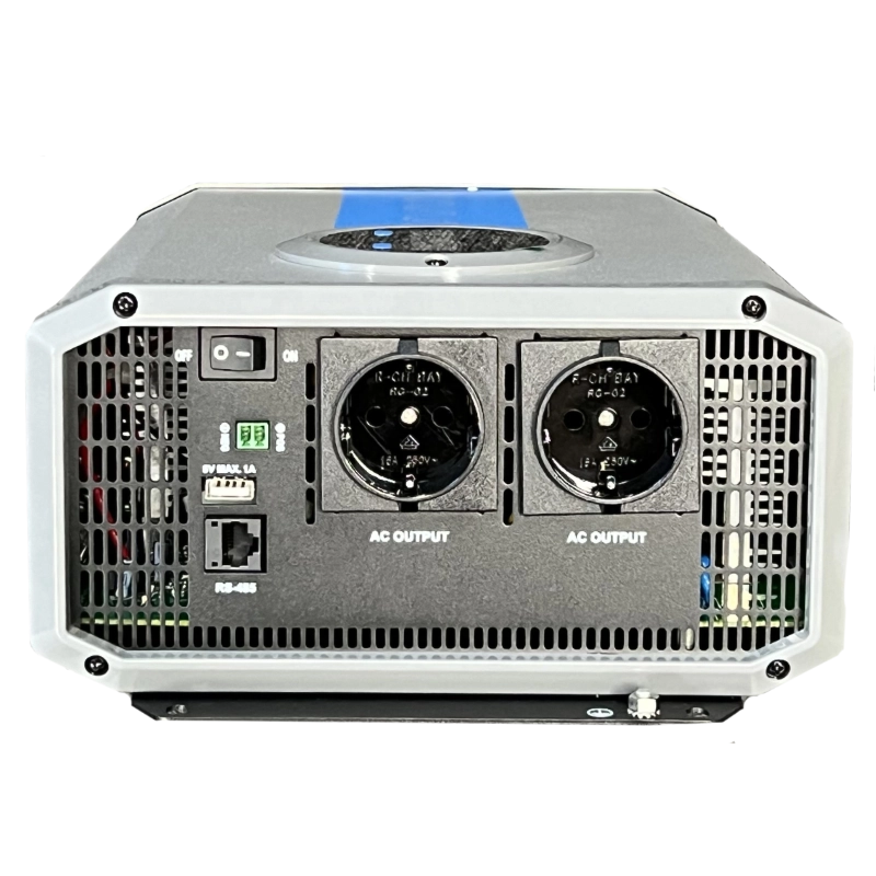 Przetwornica EPEVER IP350 Plus to profesjonalny inwerter sinusoidalny 12V DC → 220/230V AC z dwoma gniazdami typu E, idealny do oświetlenia, kamperów/przyczep i małych instalacji PV. Zapewnia czysty sinus, współczynnik mocy do 1 oraz szeroki zakres napięcia wejściowego, dzięki czemu świetnie współpracuje z fotowoltaiką. Zaawansowane zabezpieczenia (przeciążenie, zwarcie, przegrzanie, niskie/wysokie napięcie) i izolacja wejścia od wyjścia chronią podłączone urządzenia, a cyfrowa kontrola napięcia i prądu gwarantuje stabilną pracę. Łączność RS485 umożliwia zdalne sterowanie z telefonu lub komputera oraz integrację z zewnętrznym przełącznikiem w celu oszczędzania energii.